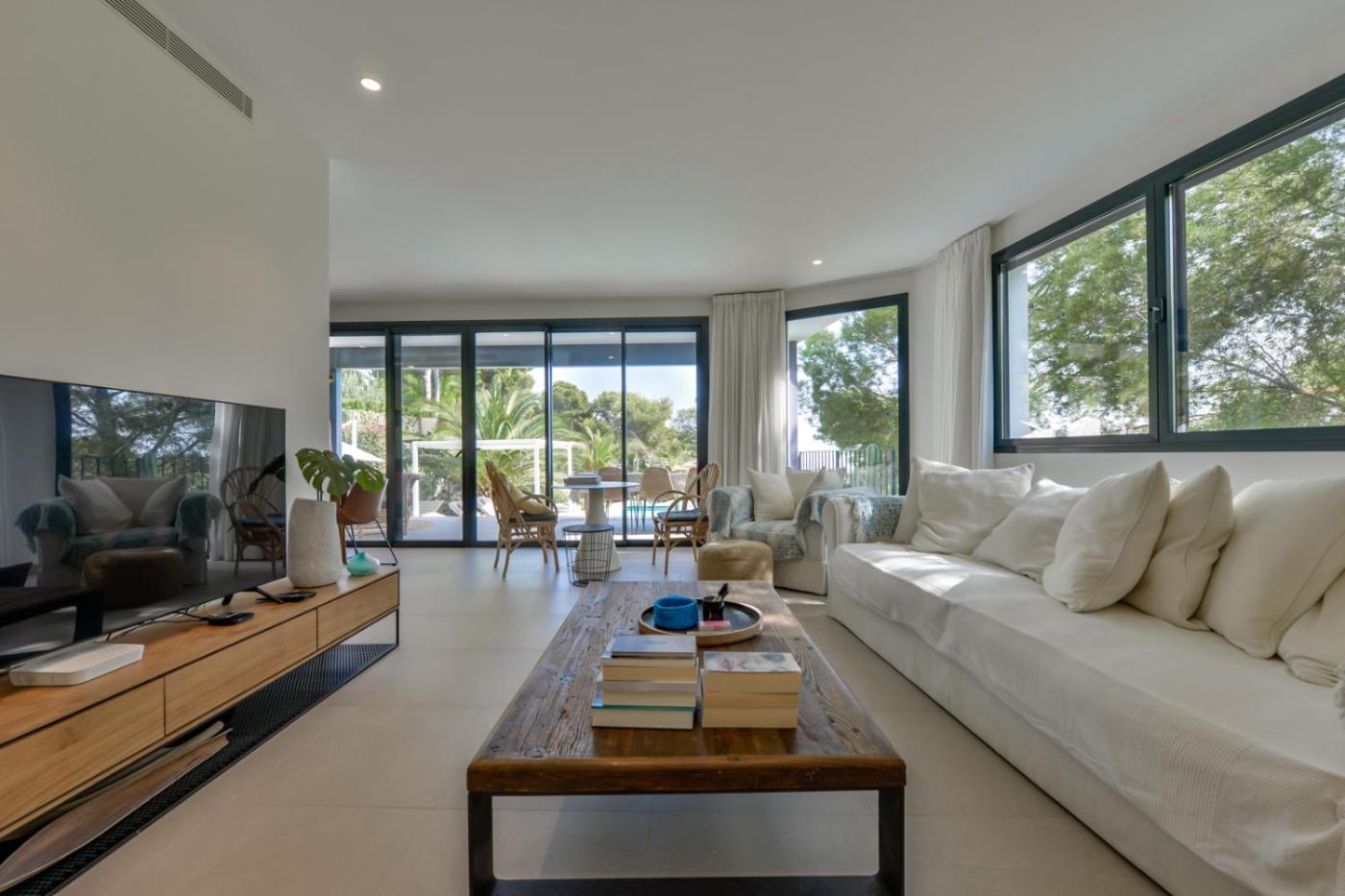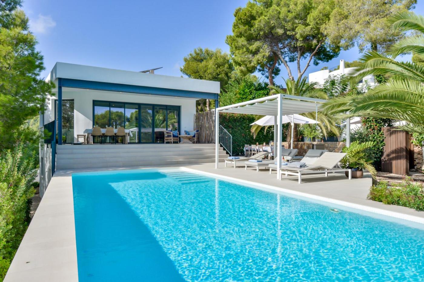 La villa dispone de 4 dormitorios, 4 baños, ropa de cama, toallas, TV con canales por cable, zona de comedor, cocina totalmente equipada y terraza con vistas al mar.