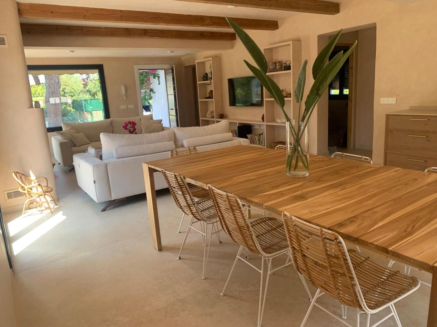 La casa o chalet tiene 3 dormitorios, 1 baño, ropa de cama, toallas, TV de pantalla plana con canales por cable, zona de comedor, cocina totalmente equipada y terraza con vistas a la piscina.
