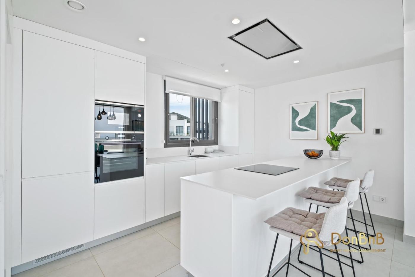 El apartamento cuenta con 3 dormitorios, 2 baños, ropa de cama, toallas, TV de pantalla plana, zona de comedor, cocina totalmente equipada y terraza con vistas al mar.