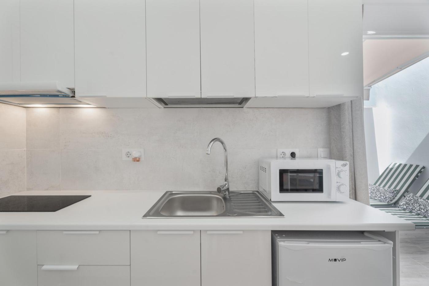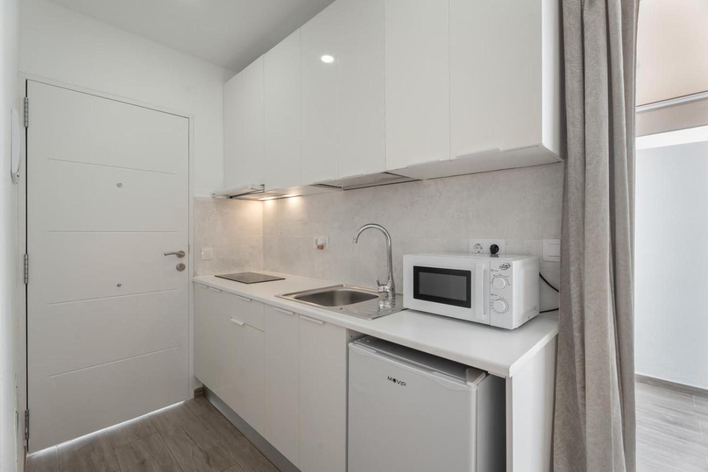 Estudio con balcón. The studio features a private bathroom fitted with a shower and a hairdryer. In the kitchen, guests will find kitchenware, a microwave, a toaster and an electric kettle. This studio has a washing machine, a private entrance, a TV with cable channels and a balcony. The unit has 1 bed.