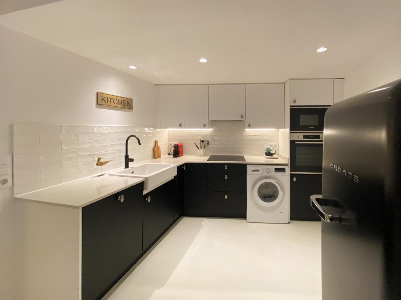 El apartamento dispone de 2 dormitorios, una cocina con nevera y lavavajillas, y 2 baños con ducha, secador de pelo y lavadora. Hay toallas y ropa de cama en el apartamento.