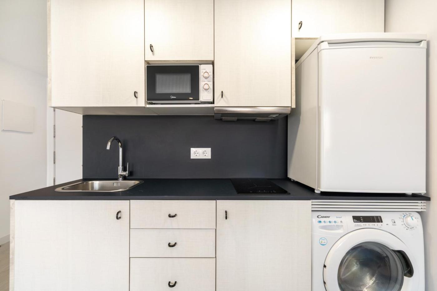Apartamento Estudio. La cocina está completamente equipada con nevera, lavavajillas, utensilios de cocina y horno. Este apartamento dispone de aire acondicionado, TV con canales vía satélite, baño privado y balcón. La unidad dispone de 2 camas. ;