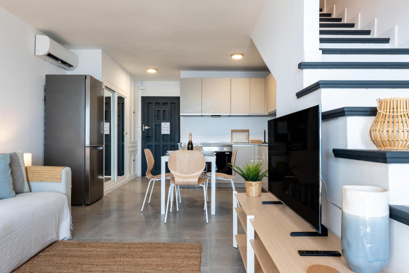Apartamento Dúplex. This spacious apartment comprises 2 bedrooms, kitchen, a terrace and 1 bathroom with a shower. The well-equipped kitchen features a refrigerator, a dishwasher, kitchenware and an oven. The air-conditioned apartment provides a TV, a washing machine, a tea and coffee maker, a safe deposit box as well as sea views. The unit offers 3 beds.