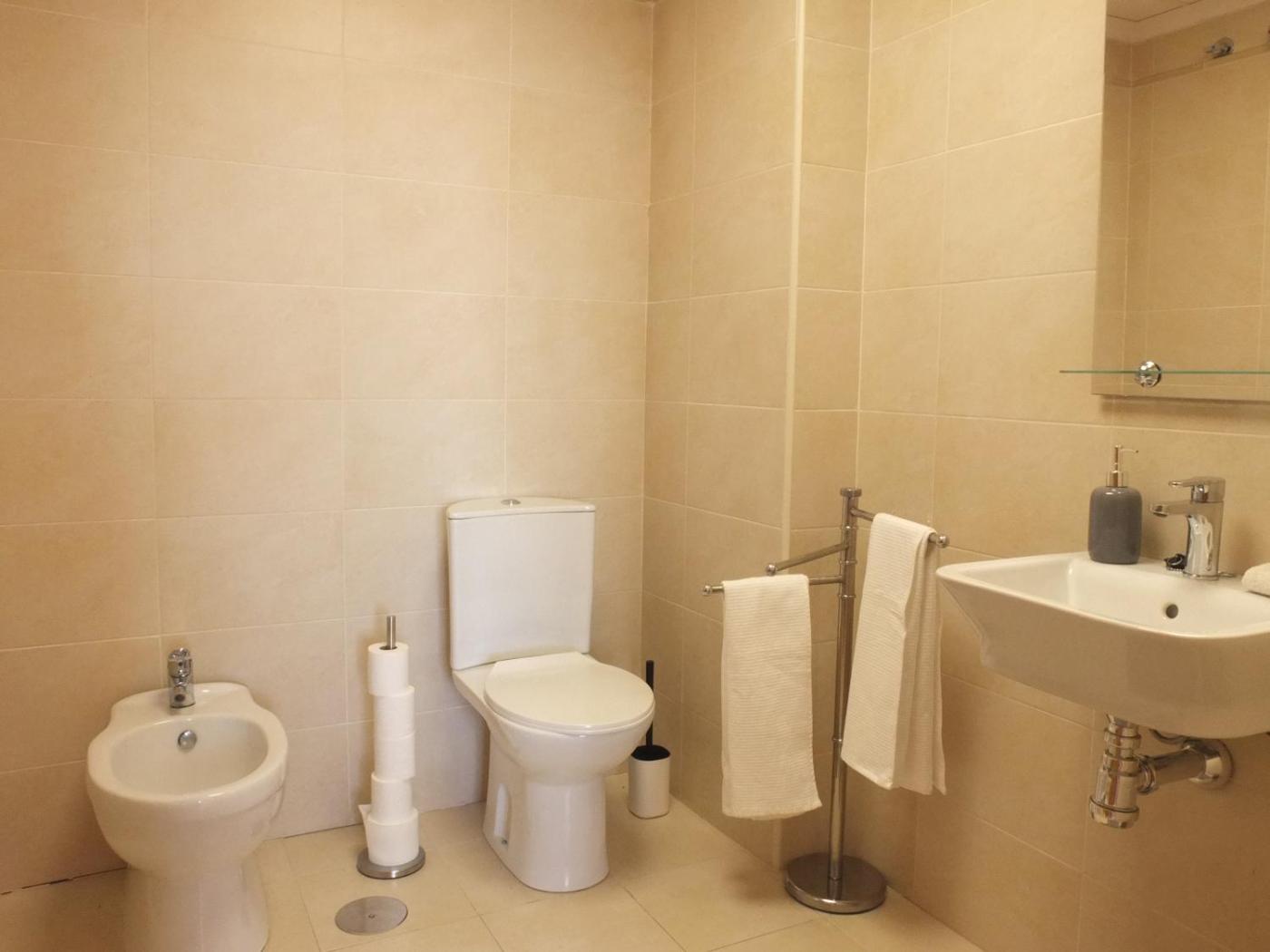Este apartamento con aire acondicionado consta de 2 dormitorios y 2 baños con bidet, ducha y secador de pelo. La cocina está equipada con nevera, lavavajillas y horno, además de cafetera y hervidor.