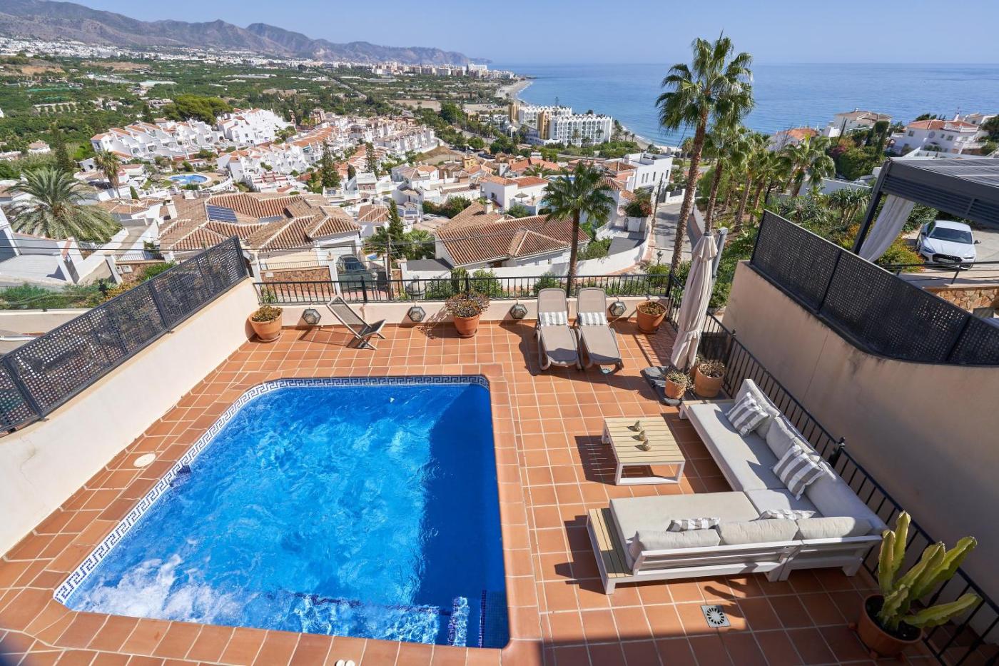 Balcon Bella Vista, que está en Nerja, tiene aire acondicionado y ofrece alojamiento con piscina privada, vistas a la montaña y balcón. La villa ofrece wifi gratis y se encuentra a 5 min a pie de El Playazo.