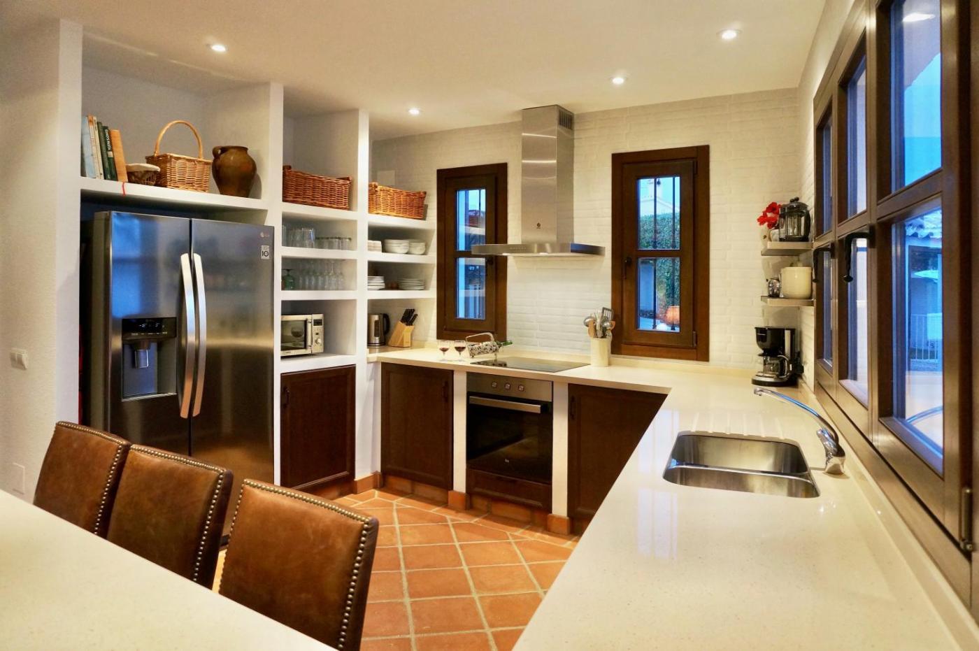 La villa cuenta con 4 dormitorios, 3 baños, ropa de cama, toallas, TV con canales por cable, cocina totalmente equipada y terraza con vistas al mar.