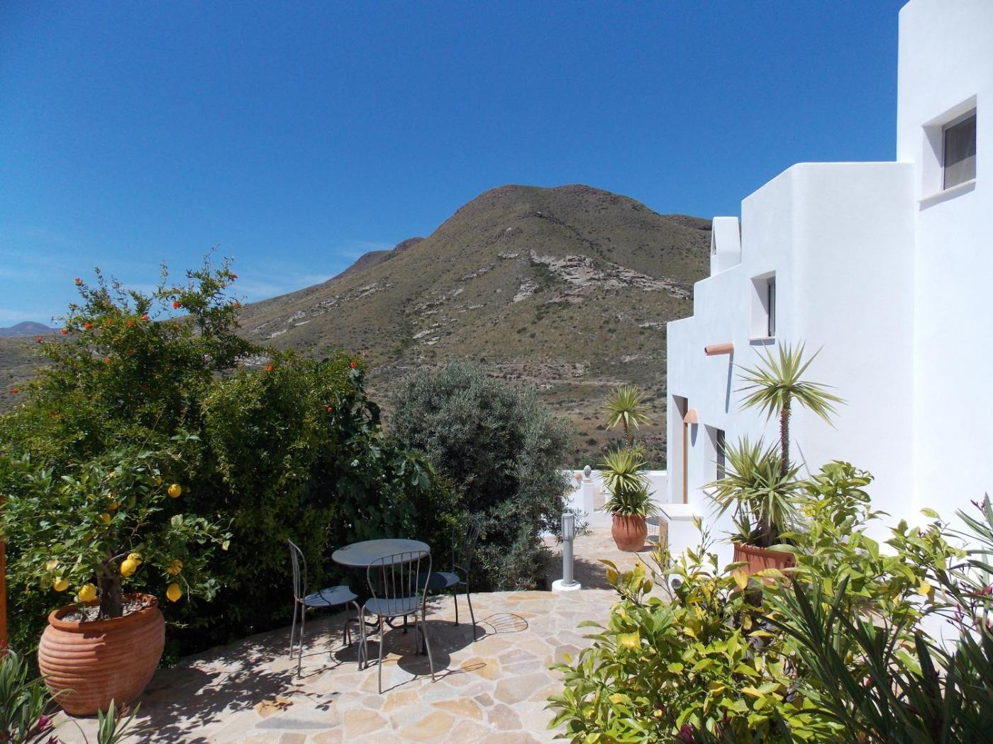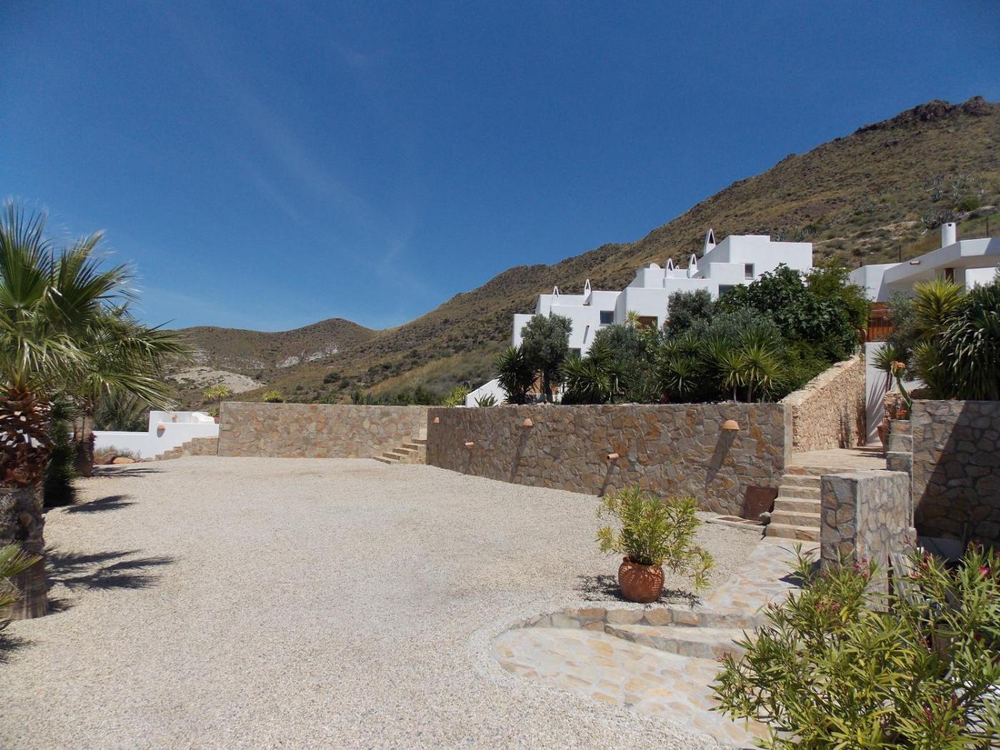 En la Majada Redonda ofrece una piscina compartida y un solárium con vistas a las montañas en Presillas Bajas. El establecimiento, situado en la reserva natural de Cabo de Gata, dispone de apartamentos con conexión WiFi gratuita.