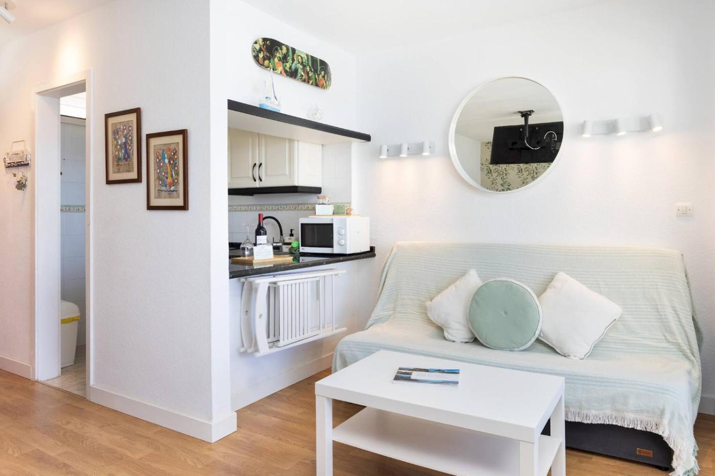Apartamento de 1 dormitorio. This apartments standout feature is the private pool. This apartment includes 1 living room, 1 separate bedroom and 1 bathroom with a shower and a hairdryer. Guests can make meals in the kitchen that has a refrigerator, kitchenware and a microwave. Boasting a terrace, this apartment also offers a washing machine, a tea and coffee maker and a TV. The unit has 2 beds.