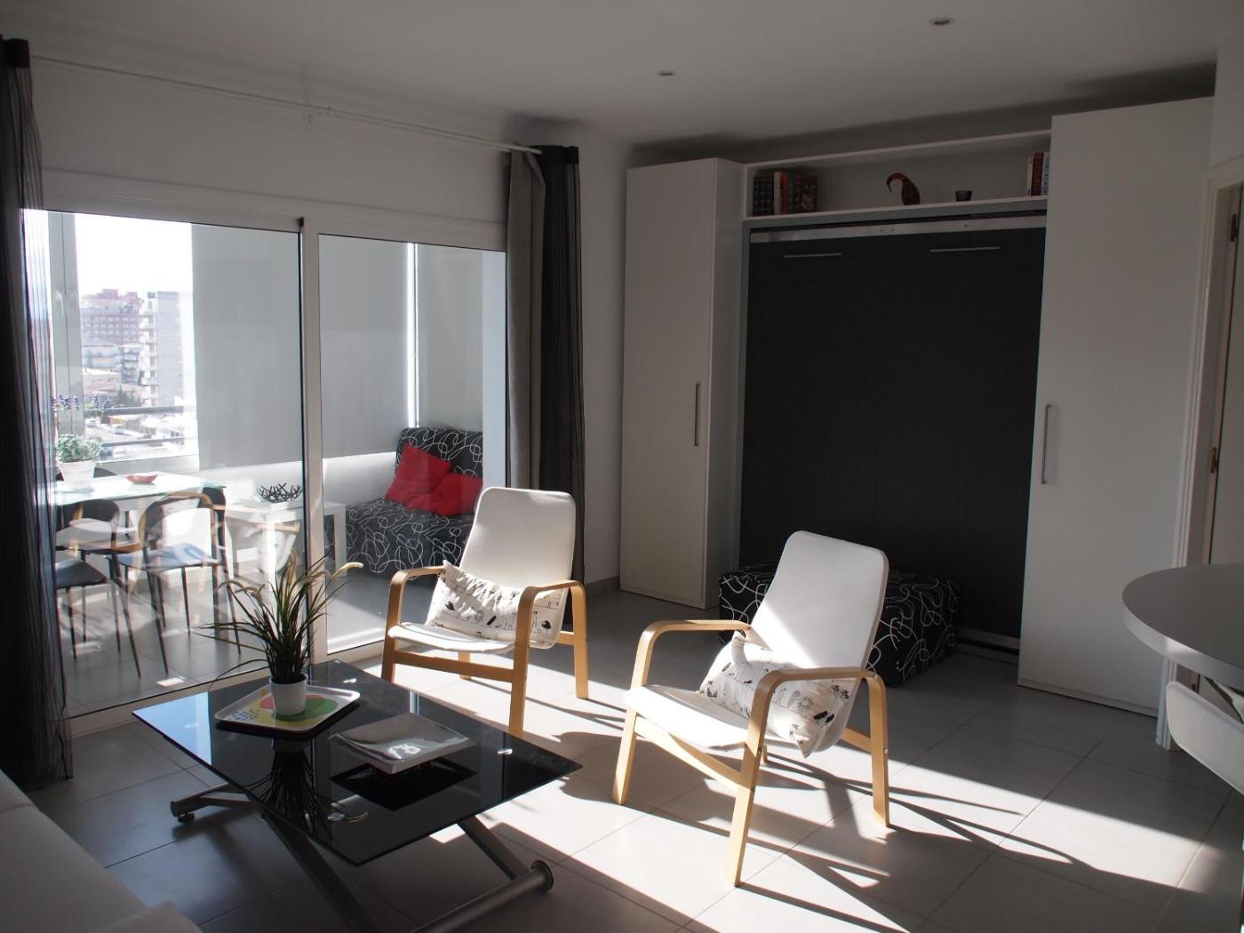 Apartamento Estudio. A kitchenette fitted with a refrigerator, a microwave and a toaster is available for cooking and storing food. The apartment features a washing machine, a coffee machine, a terrace with sea views as well as a private bathroom boasting a shower. The unit has 2 beds.