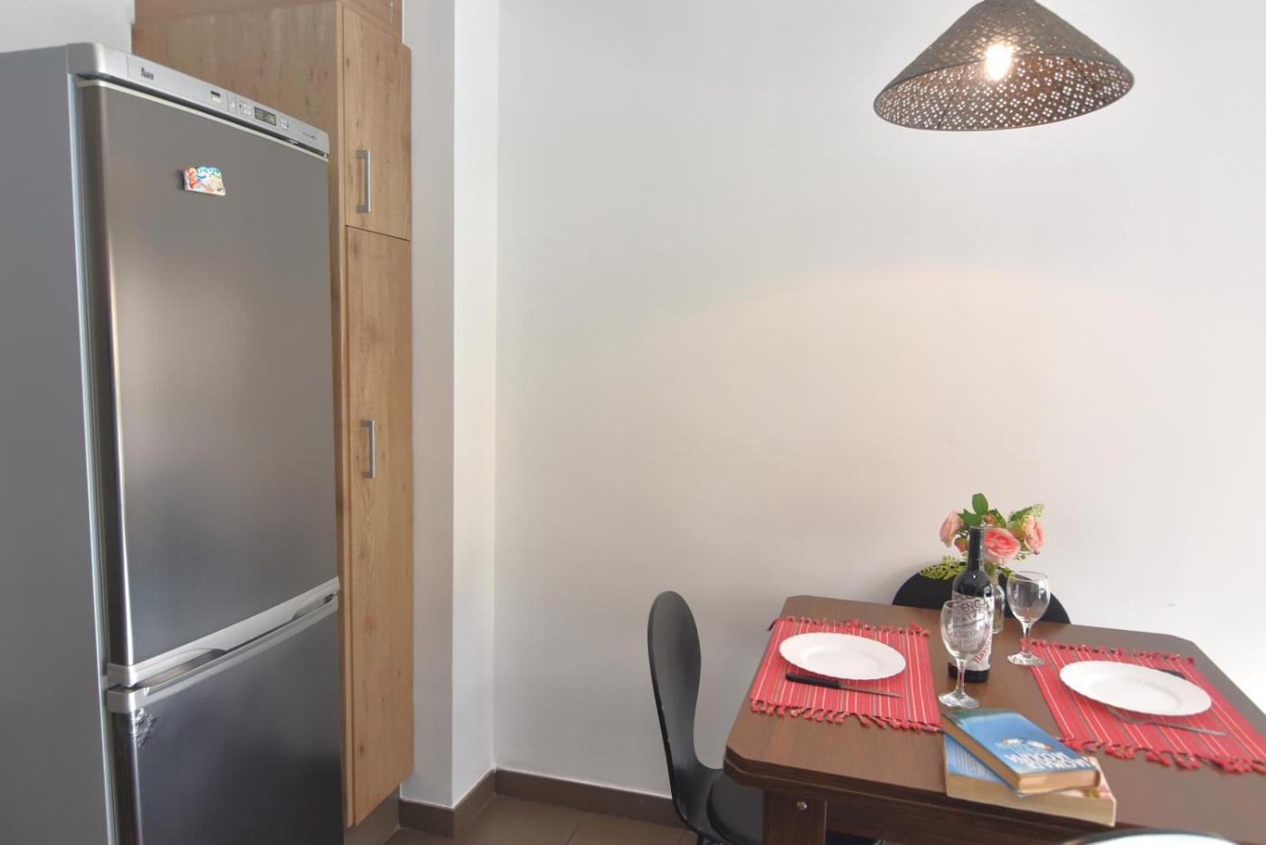Este apartamento con aire acondicionado consta de 2 dormitorios, una sala de estar, una cocina totalmente equipada con nevera y cafetera, y 1 baño con ducha y secador de pelo.