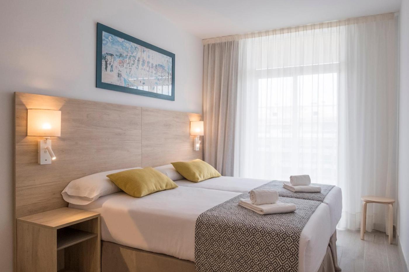 Apartamento Superior de 2 dormitorios (6 adultos). Este apartamento cuenta con aire acondicionado, sala de estar, 2 dormitorios independientes y baño con ducha a ras de suelo. La cocina está equipada con fogones, nevera, microondas y utensilios. El apartamento tiene terraza con vistas a la piscina, teteracafetera y TV de pantalla plana. Tiene 6 camas.