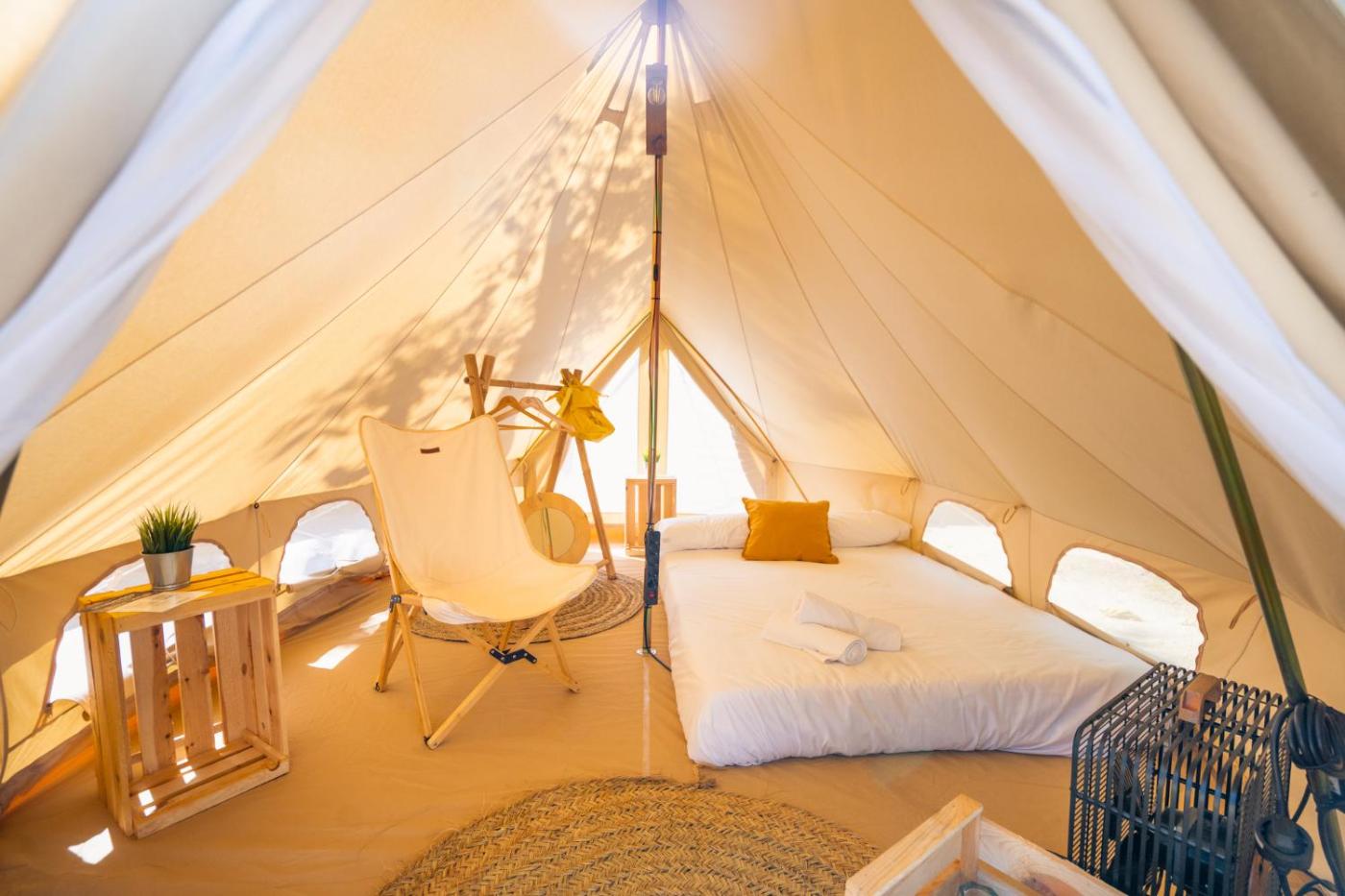 Tienda Bell. Esta tienda incluye zona de comedor al aire libre. El alojamiento cuenta con 1 cama. ;