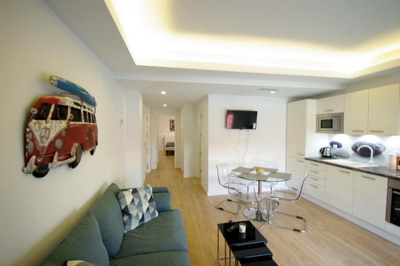 El apartamento dispone de TV. La cocina está equipada con nevera, lavavajillas y microondas, además de cafetera y hervidor.