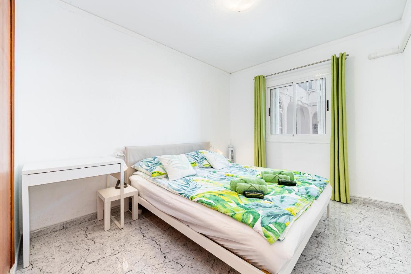 El apartamento cuenta con 2 dormitorios, 1 baño, ropa de cama, toallas, TV de pantalla plana, cocina totalmente equipada y terraza con vistas a la ciudad.