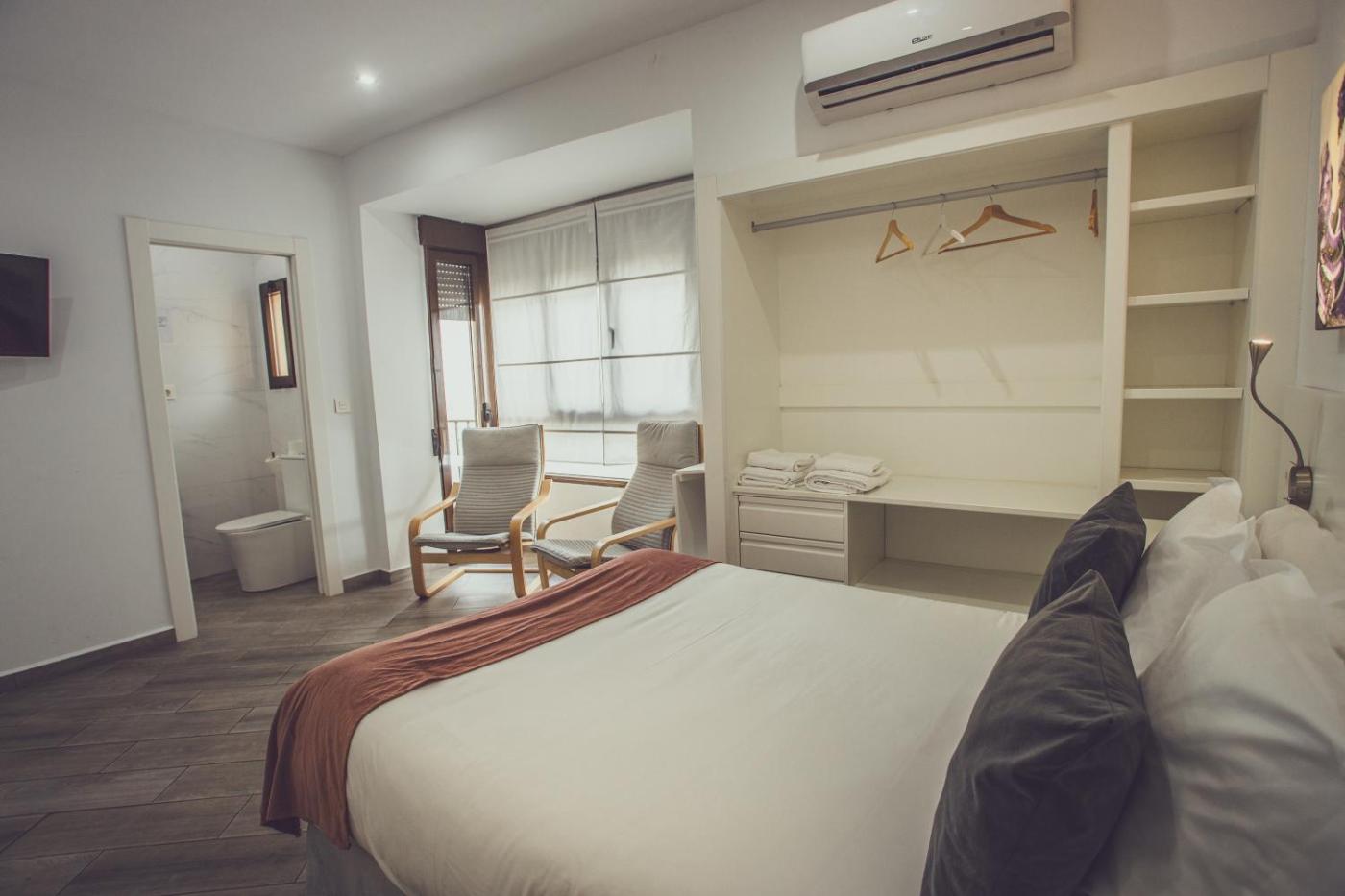 Habitación Doble. The double room offers air conditioning, a washing machine, as well as a private bathroom featuring a walk-in shower and a hairdryer. In the well-equipped kitchenette, guests will find a stovetop, a refrigerator, kitchenware and an oven. The double room features a tea and coffee maker, a dining area, a wardrobe, a tiled floor and a flat-screen TV. The unit offers 1 bed.