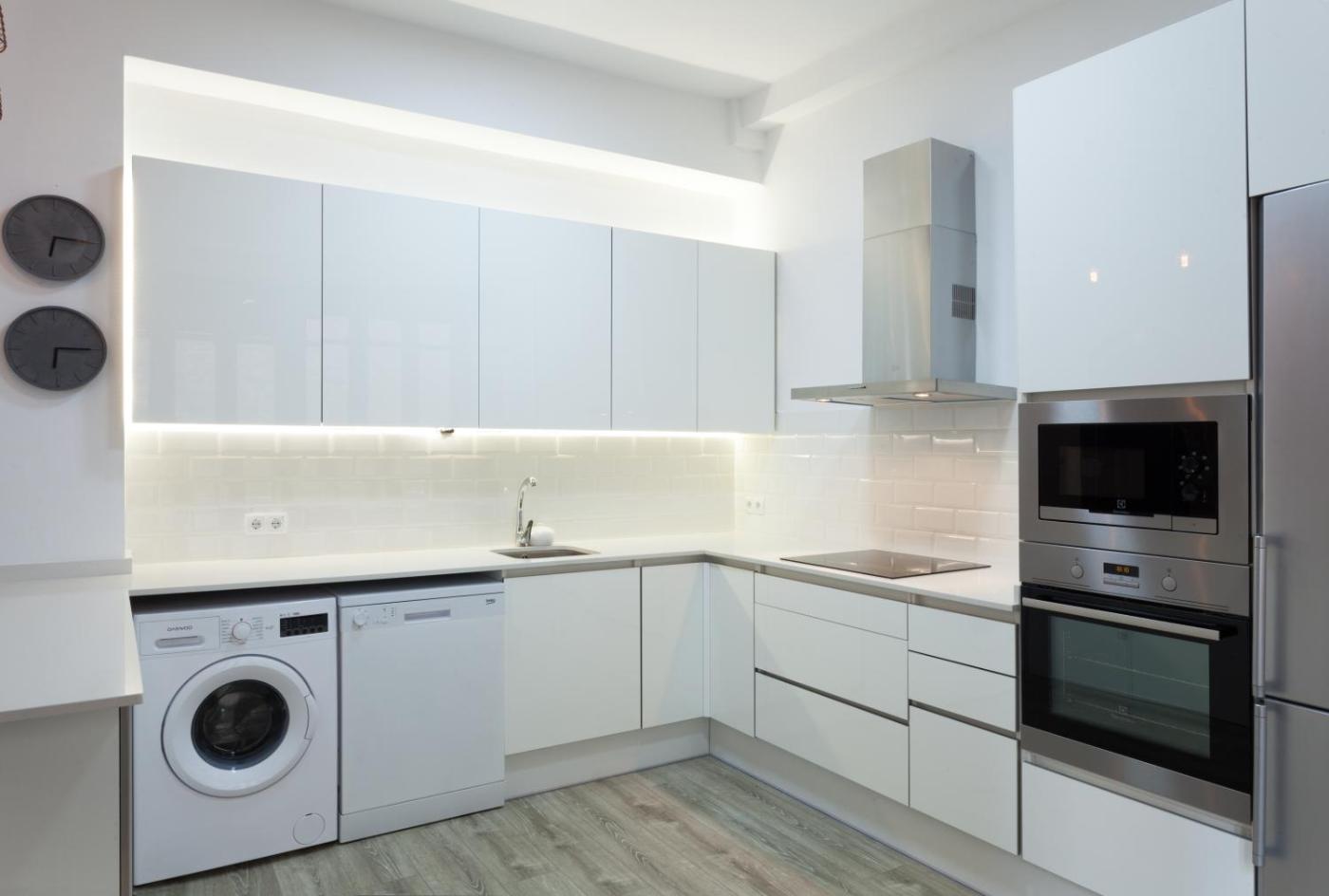 Este apartamento de 4 dormitorios tiene aire acondicionado y ofrece 1 baño con ducha, bañera y secador de pelo. La cocina está equipada con nevera, lavavajillas y horno, además de cafetera y hervidor.